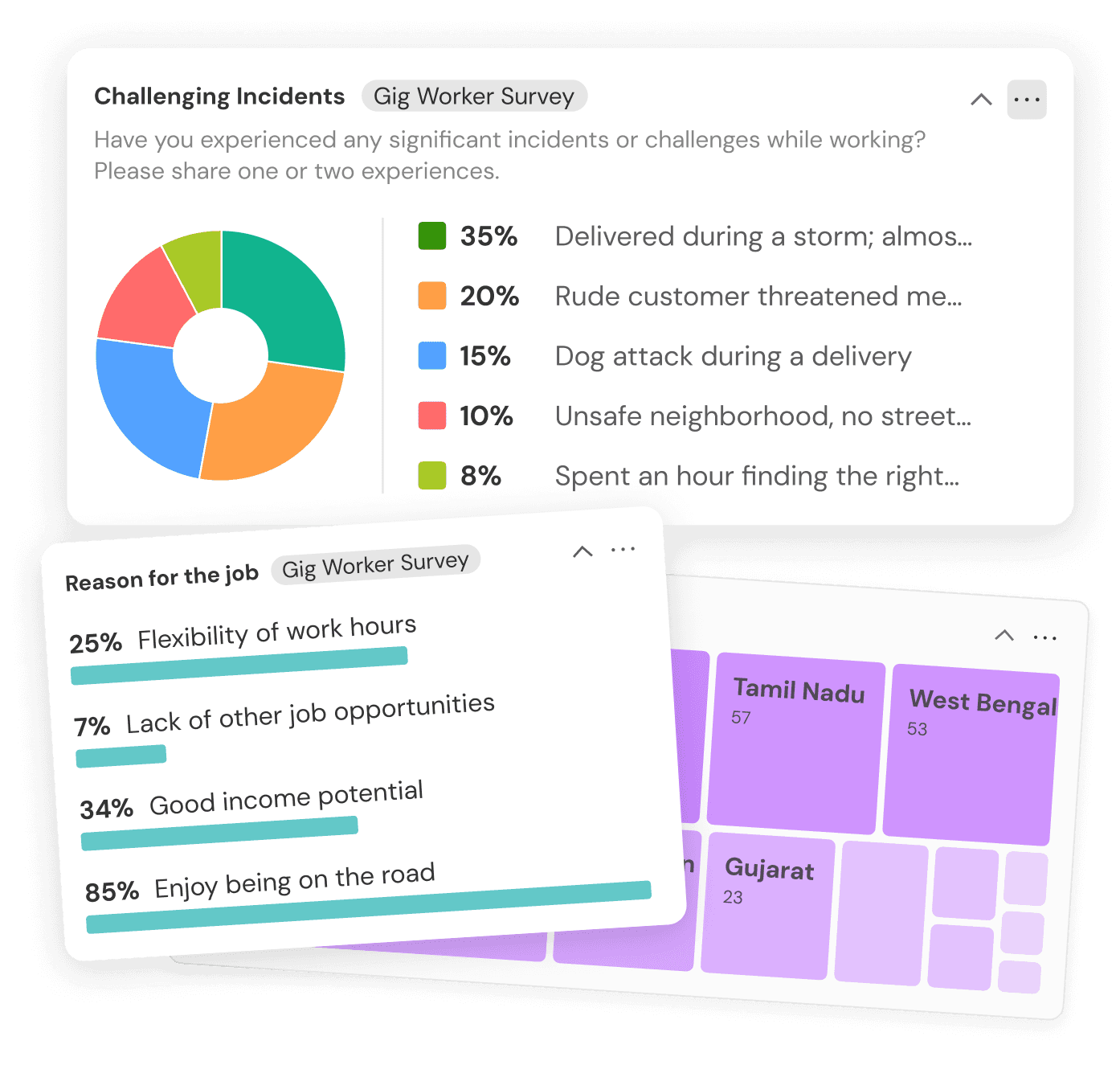 Dots simplifies data gathering, enabling structured and seamless capture of qualitative and quantitative information. Whether gathering insights from field reports, transcripts, or surveys, Dots centralizes all inputs in a standardized, structured format.